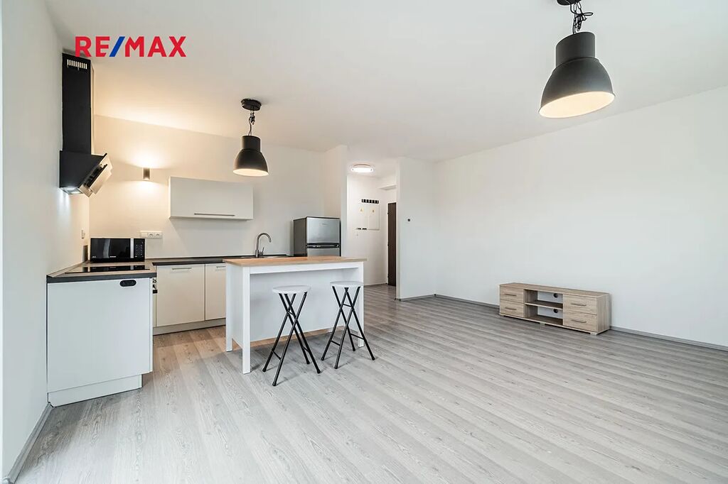K dispozici je prostorný obývací pokoj s plně vybavenou kuchyňskou linkou, jejíž součástí je indukční varná deska, elektrická a mikrovlnná trouba, myčka nádobí a kombinovaná lednice s mrazákem. Dále útulná ložnice, koupelna se sprchovým koutem, toaletou a místem na pračku. Součástí je také vlastní skladovací kóje umístěná na chodbě, hned vedle bytu. A nesmíme samozřejmě opomenout balkón, který je propojen francouzským oknem s obývacím pokojem.