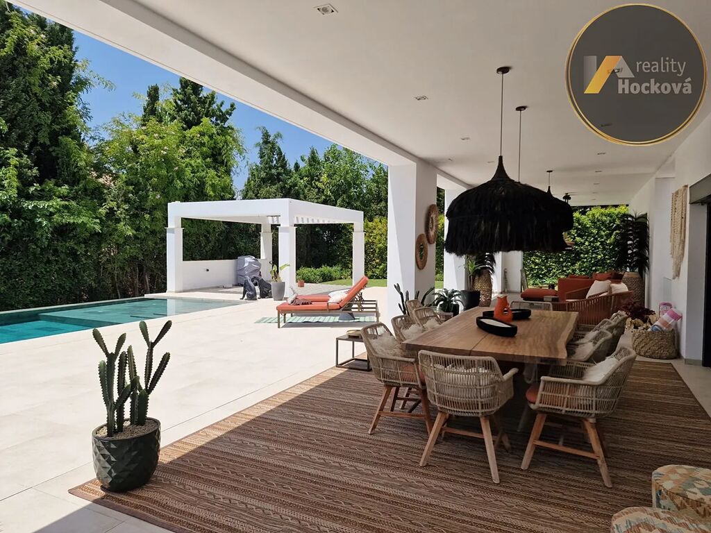 Díky elegantním moderním liniím a rozsáhlým terasám, včetně střešní terasy s lounge zónou, vířivkou a přístupem výtahem, tato vila umožňuje bezproblémový indoor-outdoor životní styl. Soukromý infinity bazén o téměř 50 m² je ideální pro relaxaci i zábavu v teplém středomořském klimatu.