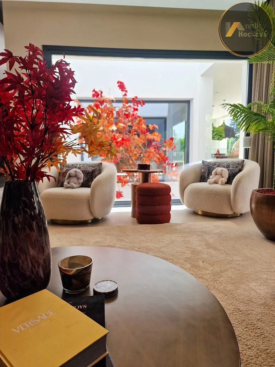 Uvnitř nabízí otevřený a světlý prostor pět prostorných ložnic a šest koupelen, navržených pro pohodlí i styl. Interiéry jsou vybaveny prémiovým nábytkem a dekoracemi od prestižních značek, jako jsou Eichholtz, Cattelan Italia a Kettal, kombinující nadčasovou eleganci s moderní sofistikovaností.