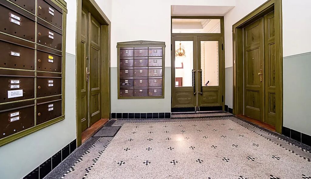 Interiér prošel citlivou a nákladnou rekonstrukcí s důrazem na zachování původních architektonických prvků – vysoké stropy, renovované dřevěné parkety a stylové detaily vytvářejí harmonické spojení historie a moderního komfortu.
