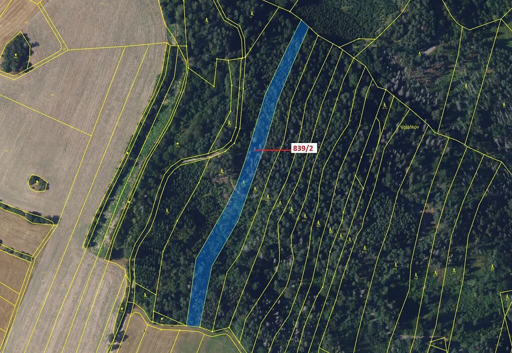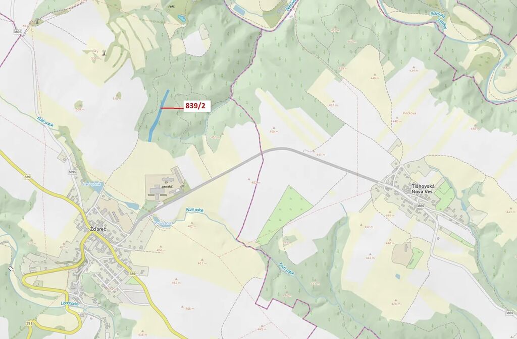 Lesní pozemek o výměře 5465 m2, parcelní číslo 839/2, podíl 1/1, katastrální území Žďárec, obec Žďárec, obec s rozšířenou působností Tišnov, okres Brno-venkov, Jihomoravský kraj.