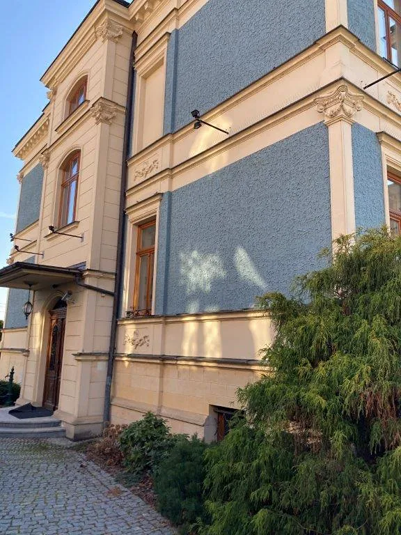 Samostatně stojící stavba, podsklepená, se dvěma NP a půdou pod členitou střechou. Základy jsou kamenné, nosné obvodové zdi jsou z cihel. Střešní krytina je z osinkocementových šablon, klempířské konstrukce jsou z pozinkovaného plechu. Fasáda je z roku 2009. Schody do jednotlivých pater jsou z pískovce, na půdu dřevěné. Okna jsou dřevěná EURO, dveře hladké plné a prosklené, rovněž dřevěné z masívu. Podlahy jsou betonové s textilními krytinami, v sociálních prostorách jsou keramické dlažby. Vytápění objektu je ústřední, prostřednictvím kotle na zemní plyn. Elektroinstalace je provedena světelná a motorová. Je proveden rozvod vody studené a teplé, zdrojem teplé vody je kotel ÚT. Vybavení kuchyní tvoří kuchyňské linky. Vybavení sanity tvoří sprchové kouty, umývadla a WC. Ostatní vybavení tvoří 2 krby, elektronický zabezpečovací systém, rozvod hydrantu. Stavba je napojena na IS: voda, elektro, kanalizace, plyn a optická síť. Zastavěná plocha činí 384 m2, užitná plocha cca 714 m2.