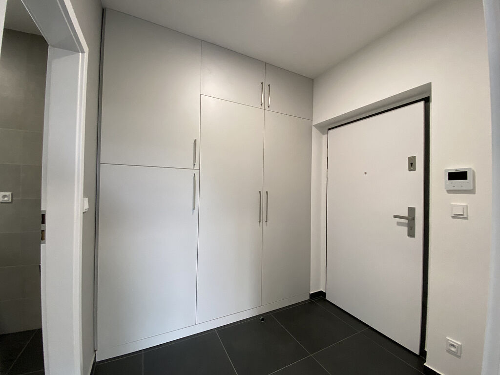The apartment feels bright and clean, with a modern and airy atmosphere. It is partially furnished – it includes a kitchenette with built-in appliances, built-in wardrobes offering plenty of storage space, and complete lighting throughout the apartment. Comfort is enhanced by air conditioning, electric exterior blinds, interior blinds, insect screens and high-quality tiled flooring. The loggia facing the quiet greenery provides a pleasant place to relax after a long day.