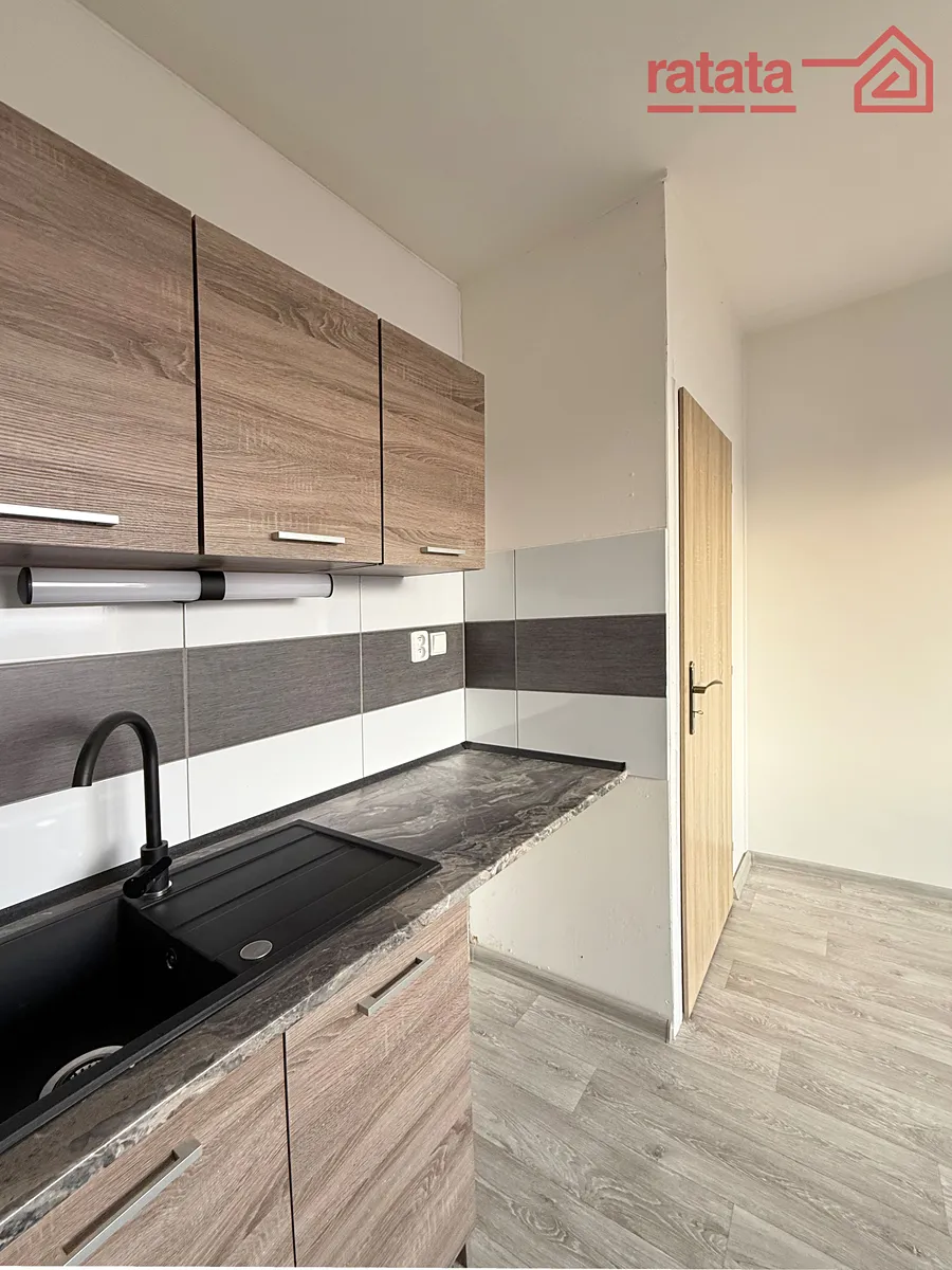 Je to čistý a slunný byt. Je zde kuchyňská linka, plynový sporák, sprchový kout, umyvadlo a WC. Na podlahách je položeno lino. Byt je volný k nastěhování IHNED.