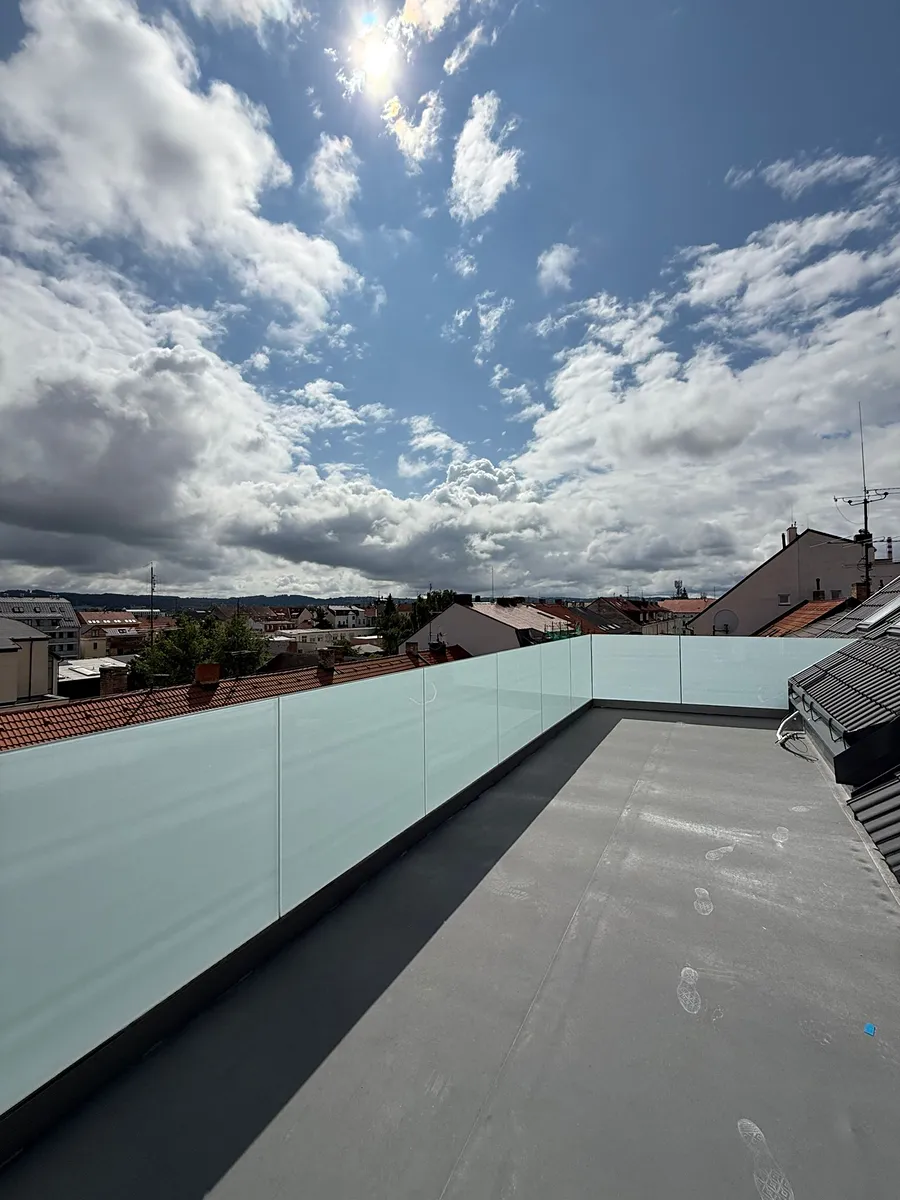-tři terasy o velikostech 6,12 m², 14,10 m² a 8,40 m²