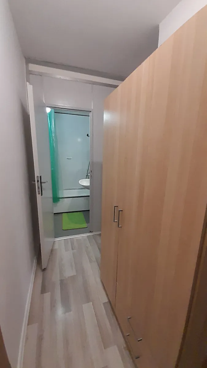 Vybaven základní šatní skříní, pračkou, vařič, stolek se židlema, rozkládací sedačka.