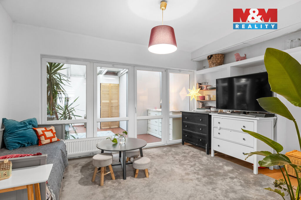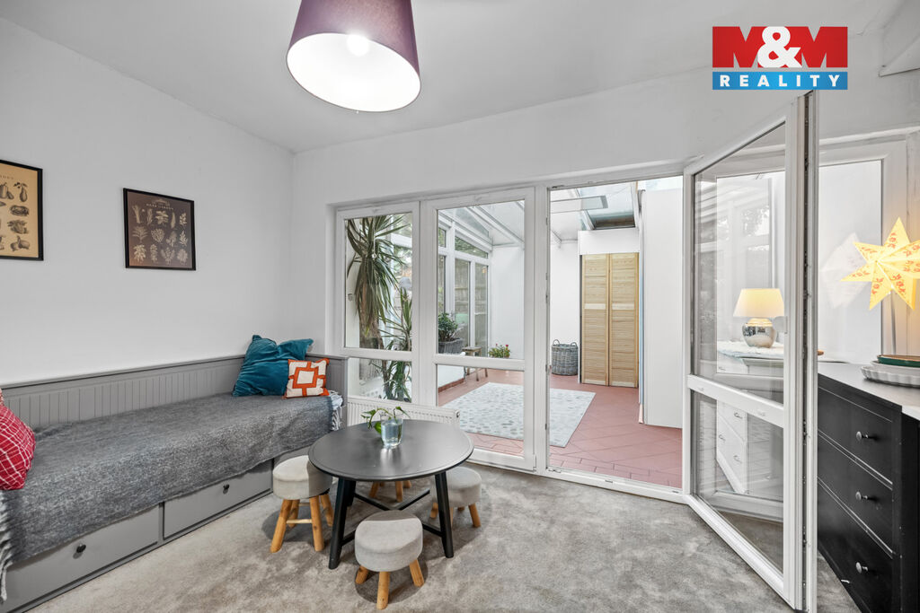Uvnitř vás přivítá velký otevřený prostor, kde se obývací pokoj přirozeně spojuje s kuchyní, ideální místo pro setkávání, vaření i lenošení. Z obýváku plynule vstoupíte do zimní zahrady s krbem, která v chladnějších dnech vytváří kouzelnou atmosféru. A když se oteplí, otevřete dveře a jste na dřevěné terase, stylové náhradě za zahrádku, kde se dá grilovat, číst nebo prostě jen být.