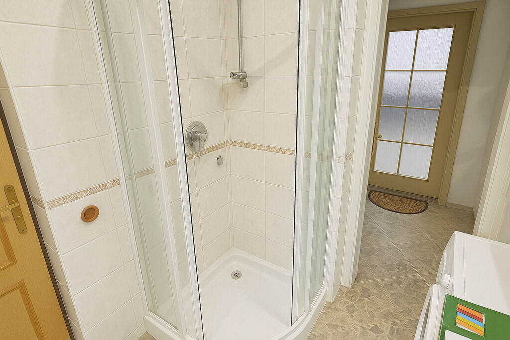 Interiér je částečně zařízený, součástí je kuchyňská linka, úložné prostory a vestavěné skříně. K bytu náleží také sklep o velikosti 3,36 m² a přístup do společných prostor domu.