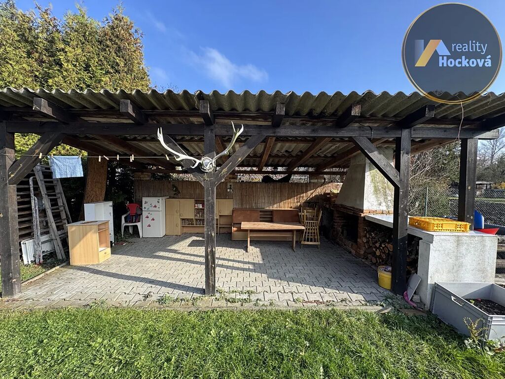 Součástí je suché WC a zastřešený altán, který poskytuje příjemné místo pro letní posezení s rodinou či přáteli.