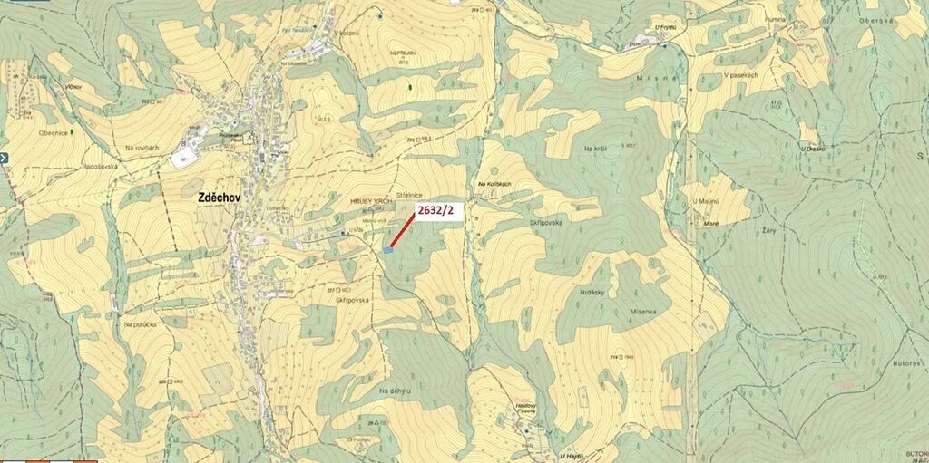 Lesní pozemek o výměře 1051 m2, parcelní číslo 2632/2, podíl 1/1, katastrální území Zděchov, obec Zděchov, obec s rozšířenou působností Vsetín, okres Vsetín, Zlínský kraj.