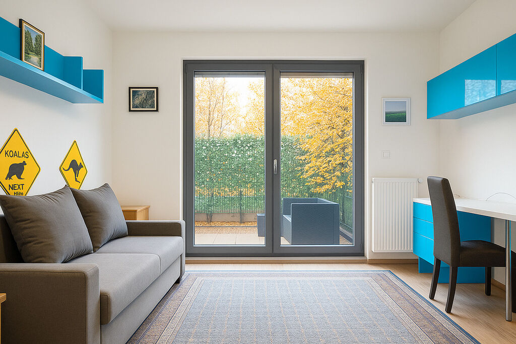 Součástí bytu jsou vestavěné skříně na míru, které šetří místo a zajišťují dostatek úložných prostor. O pohodlné bydlení se stará také rekuperace a elektrické ovládání rolet pro maximální komfort. Dům je navíc vybaven fotovoltaickou elektrárnou, což výrazně snižuje náklady na energii pro všechny obyvatele činžovního domu. K bytu náleží také sklep a parkovací stání, které vám usnadní každodenní život.