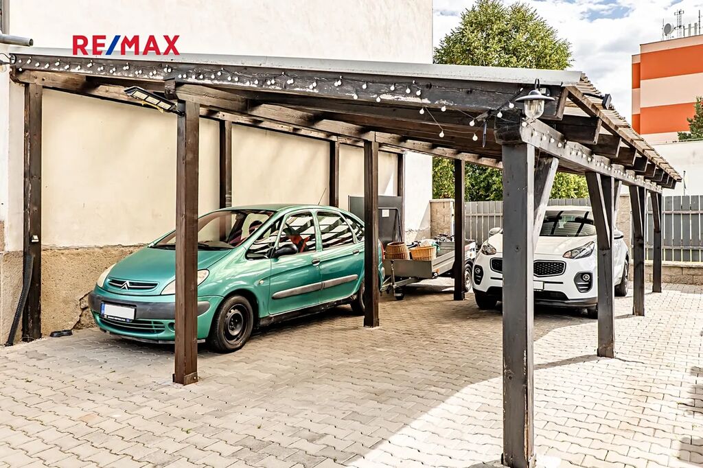 Samozřejmostí je kryté parkovací stání pro několik aut a samostatná garáž, které doplňují komfortní zázemí domu. Nechybí ani zahrada, ideální pro chvíle odpočinku, posezení s přáteli nebo rodinné grilování.