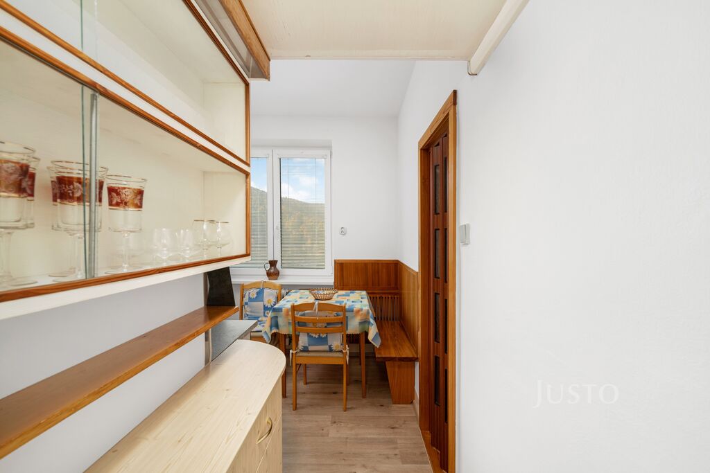 Velkým benefitem bytu je balkón s krásným výhledem do zeleně a na okolní krajinu, což oceníte zejména při relaxaci po práci nebo o víkendech. K bytu náleží také sklep o velikosti 1,2 m², který poskytuje další úložné možnosti. Kuchyně je vybavena jídelním stolem, židlemi, kuchyňskou linkou, lednicí, mrazákem, plynovou varnou deskou, elektrickou troubou a mikrovlnkou. V koupelně najdete vanu, což je praktické zejména pro mladé páry nebo jednotlivce.