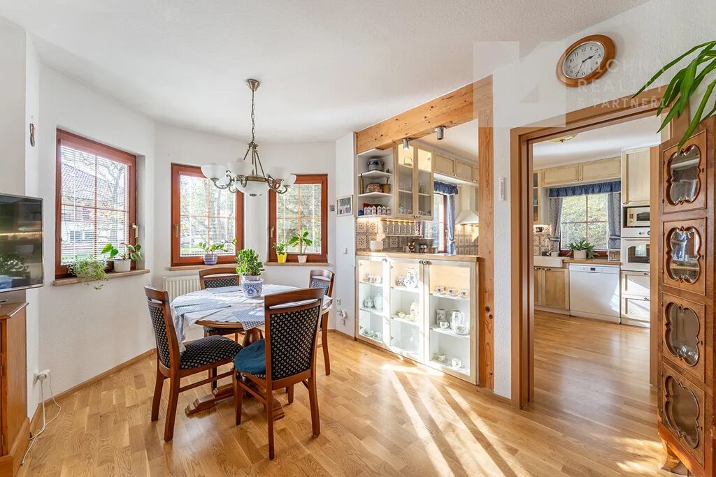 K domu náleží rozsáhlý pozemek o výměře 1 091 m² s upravenou zahradou, venkovním bazénem a okrasným jezírkem, které vytvářejí příjemné prostředí pro relaxaci.