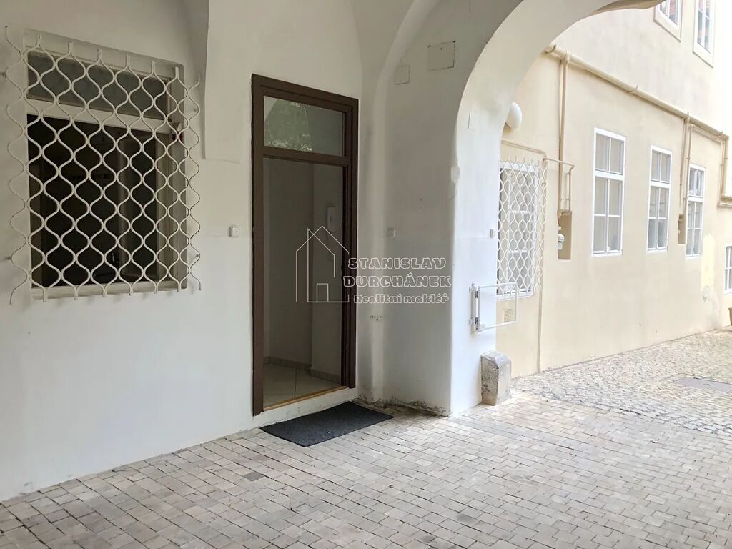 Kanceláře jsou situovány v přízemí zrenovovaného domu s bohatou historií. Okna kanceláří jsou orientována na jih do klidného dvora. K dispozici jsou 3 kanceláře o podlahových plochách 13,3 m2, 21,4 m2 a 13,8 m2, čajová kuchyňka (1,7 m2), koupelna se sprchovým koutem a WC (5,7 m2), předsíň (4,4 m2) a zádveří (1,7 m2).