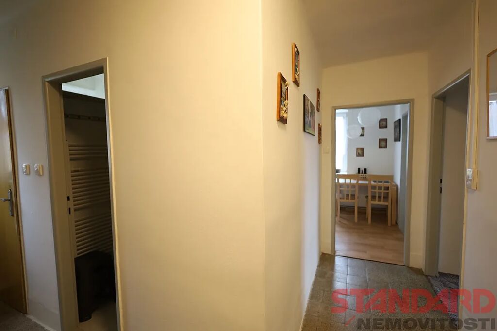 • Prostorná chodba se vstupy do koupelny se sprchovým koutem, umyvadlem a topným žebříkem, na samostatné WC, do kuchyně a obývacího pokoje; za obývacím pokojem se nachází ložnice.