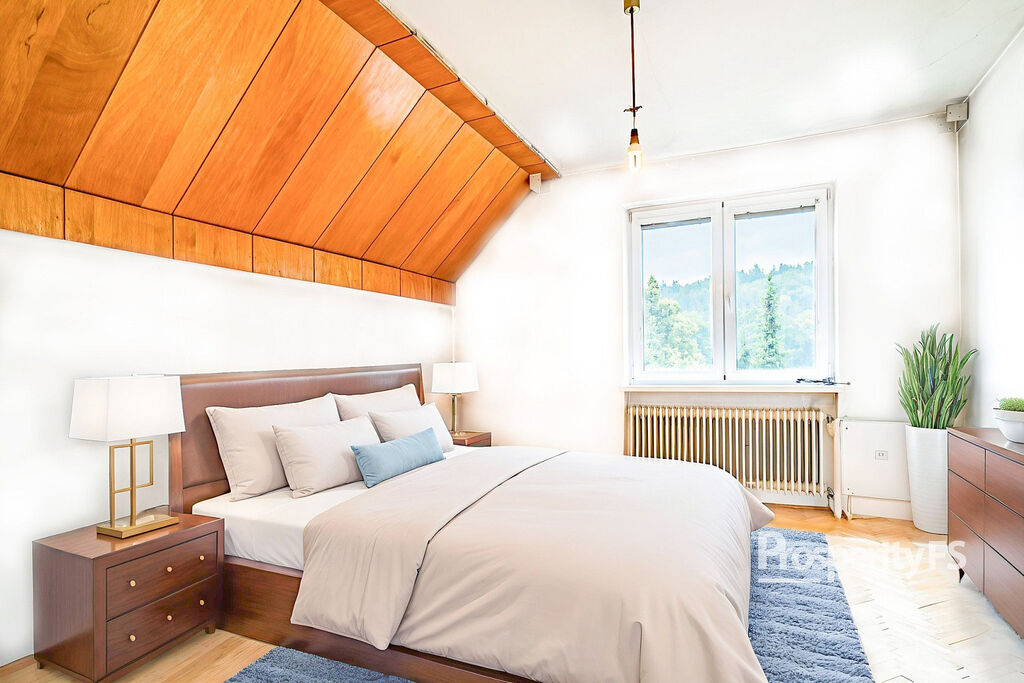 V přízemí vás přivítá prostorná vstupní hala, velký obývací pokoj s přípravou na krb, samostatná kuchyně, dvě ložnice, koupelna a samostatná toaleta. Z obývacího pokoje můžete vyjít přímo na terasu s nádherným výhledem na Lysou horu – ideální místo pro ranní kávu nebo večerní posezení.