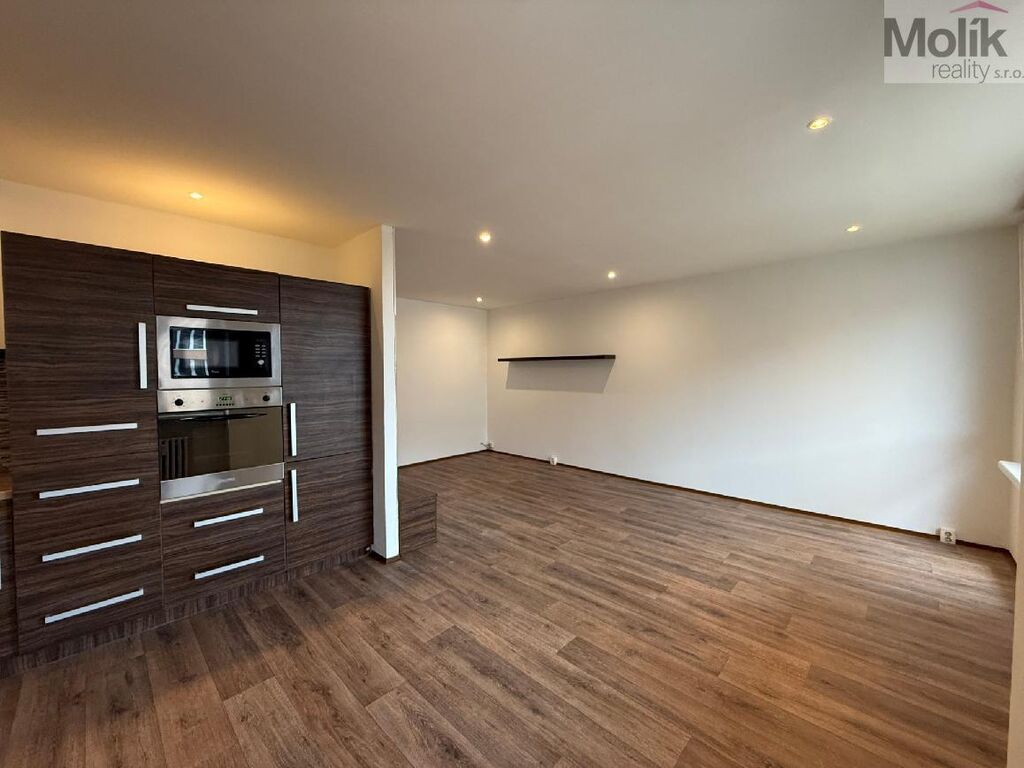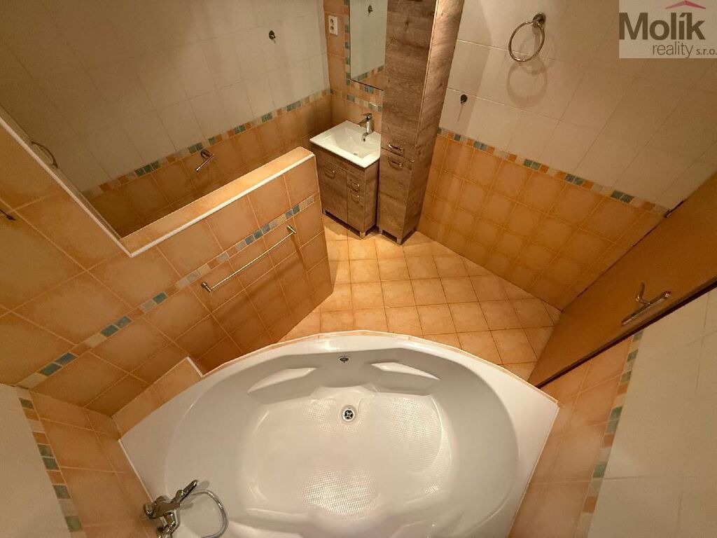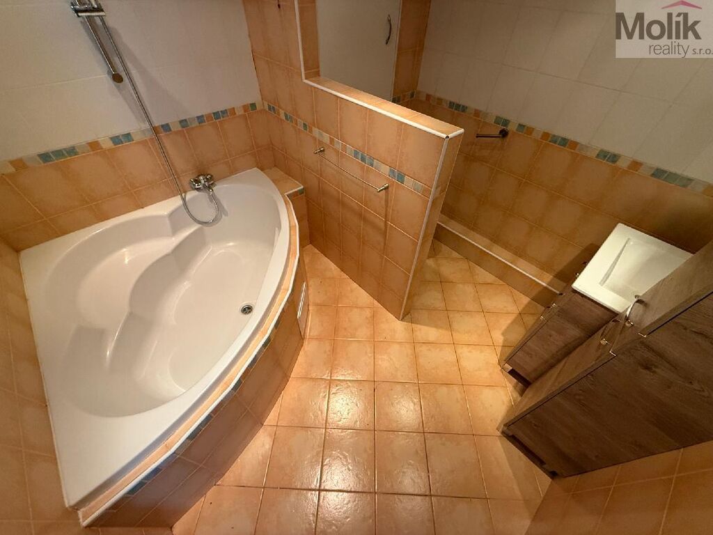 Bytová jednotka prošla úpravami - nová kuchyňská linka s vestavnými spotřebiči - indukční varná deska, horkovzdušná trouba, mikrovlnná trouba, myčka, v kuchyni a v pokojích je položena plovoucí podlaha, v chodbě je položeno linoleum, koupelna je spojena s toaletou (rohová vana, umyvadlo se skříňkou, zrcadlem a úložným prostorem, keramický obklad a dlažba), výmalba, v celém bytě jsou snížené stropy.