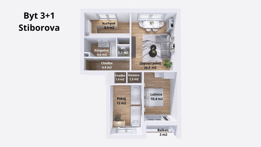 – s balkónem a prostorným sklepem o ploše 3,5 m2