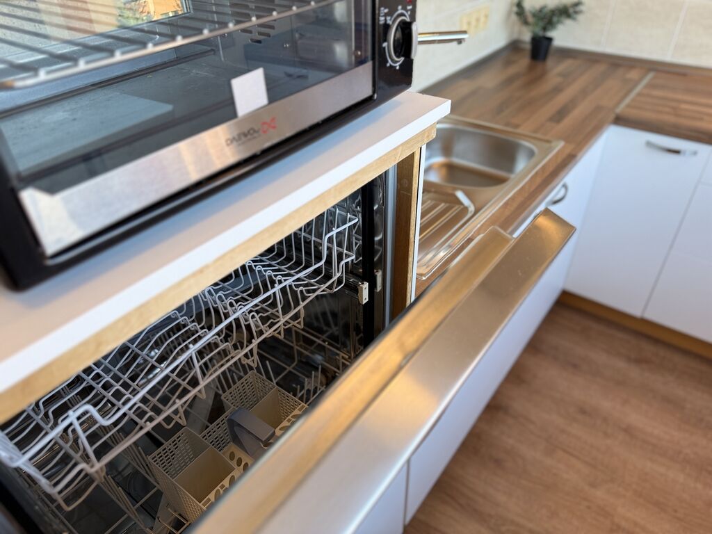 Součástí bytu je prostorná kuchyně, která potěší každého, kdo má rád vaření i pořádek v kuchyni. Najdete zde vestavěnou lednici, troubu, myčku i varnou desku – všechno pěkně po ruce. Jídelní stůl má své ideální místo v navazujícím obývacím pokoji, kde vzniká krásný prostor pro společné stolování i rodinné chvíle. Obývací pokoj je velkorysý a světlý – ideální na relax, posezení s přáteli i večery s rodinou. Ložnice má přímý vstup na balkon s výhledem na Olomouc, kam si můžete vyjít s ranní kávou nebo večer jen tak vydechnout. Další samostatný pokoj poslouží podle potřeby jako dětský pokoj, pracovna nebo pokoj pro hosty. Koupelna s vanou nabízí dost místa i pro pračku, nechybí elektrické podlahové topení pro příjemný komfort, samozřejmostí je samostatné WC a šatna, která elegantně vyřeší úložné prostory.