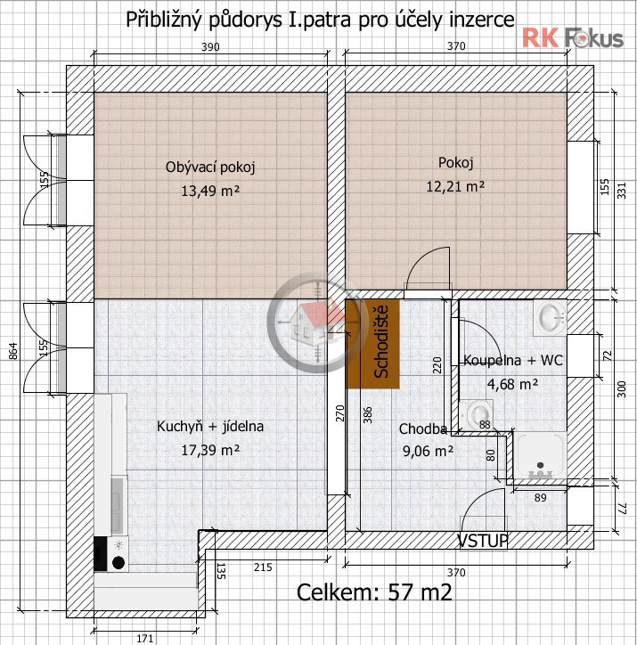 (+ zálohy na energie 4.500 Kč/měsíc, + vratná kauce 42.000 Kč, + provize RK 10.000 Kč)