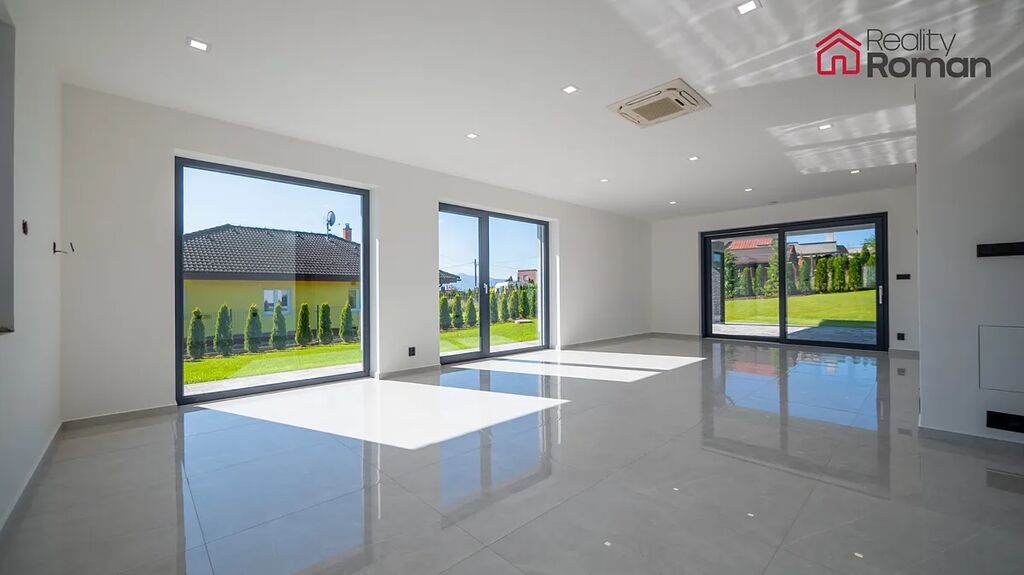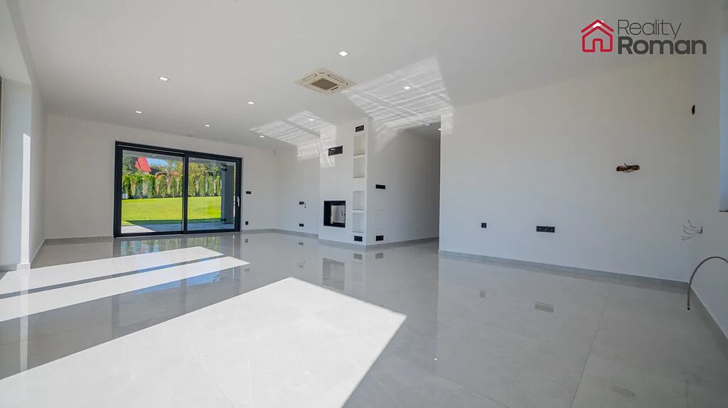Jednopodlažní dům s užitnou plochou 221 m² byl postaven na slunném pozemku o velikosti 1 421 m² a spadá do energetické třídy B. Dům je kompletně dokončený včetně interiéru, exteriéru, bazénu, oplocení i zpevněných ploch a je připravený k okamžitému nastěhování.