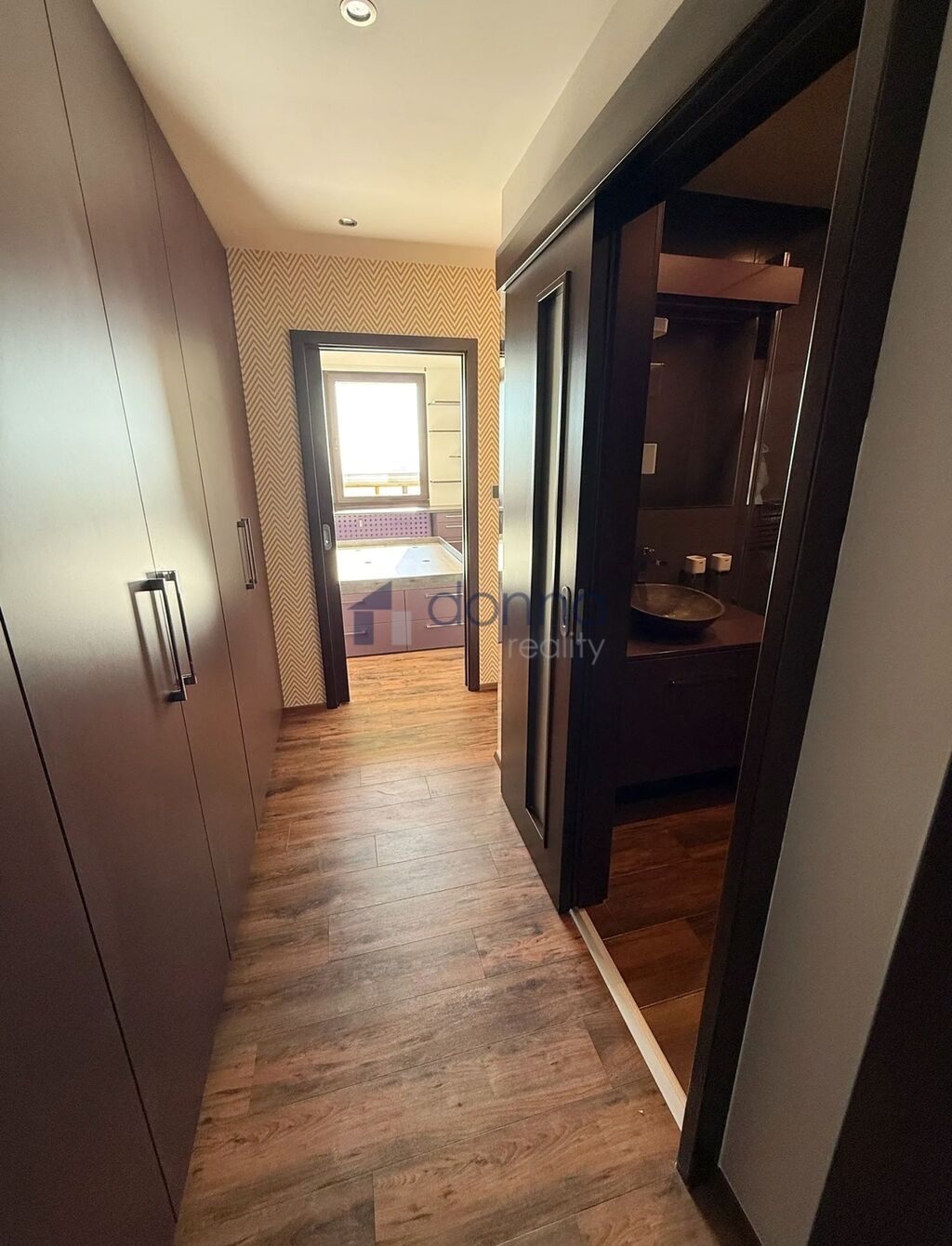 Na lodžii je bar z masivu vyrobený na míru, k dispozici budou nové barové židle - krásný výhled na celou Prahu.