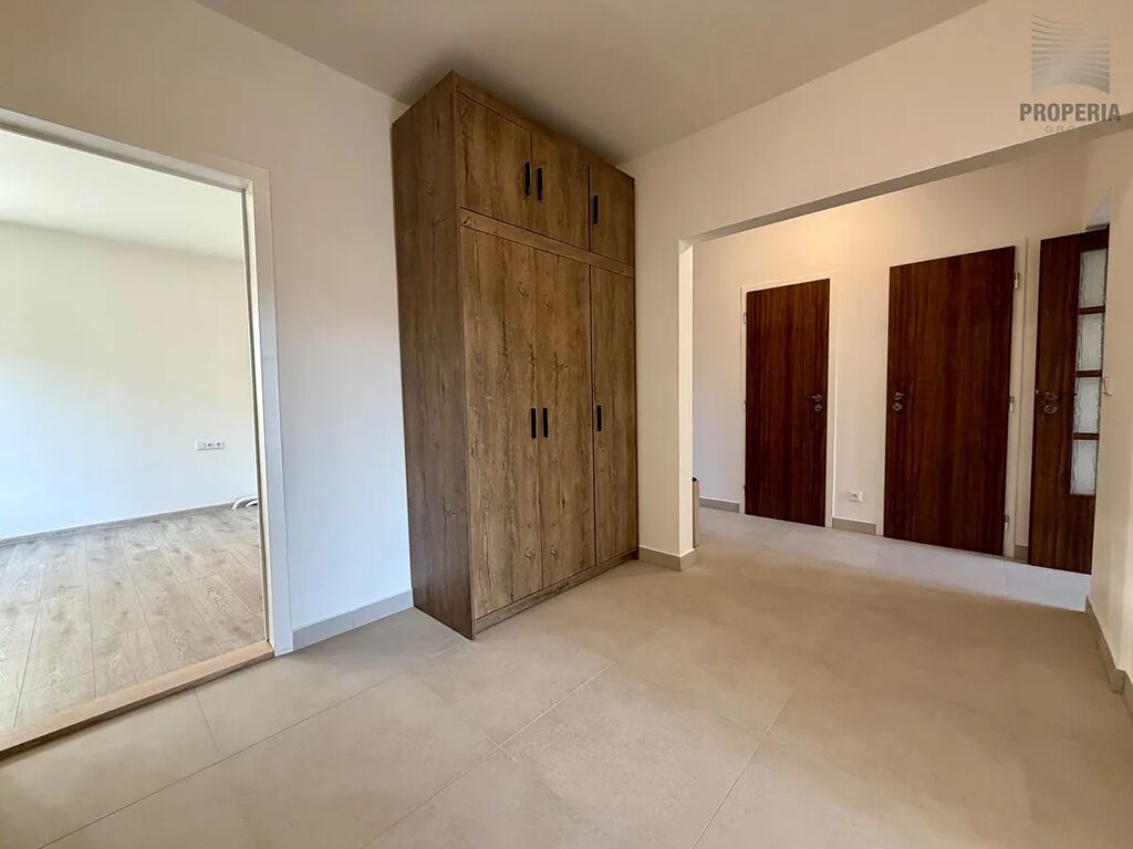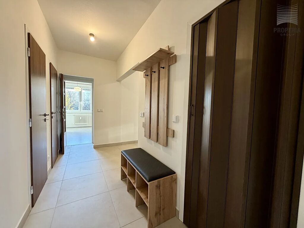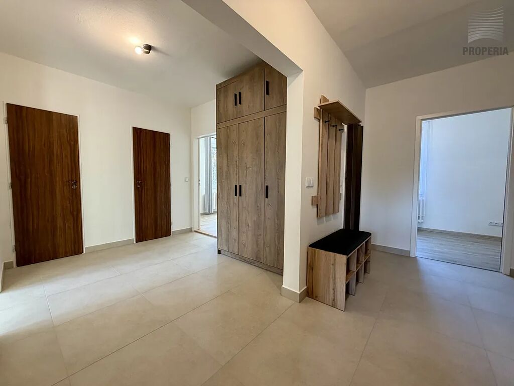 Nabízíme k pronájmu zcela nově zrekonstruovaný byt o dispozici 3+1 s lodžií s výhledem do zeleně, ul. Gruzínská, Brno - Bohunice. Celková plocha bytu činí 75 m2 (z toho cca 5 m2 lodžie a cca 1 m2 sklep), 1. p/7 revitalizovaného domu s výtahem. Dispoziční řešení bytu nabízí neprůchozí pokoje, prostornou šatnu, spižírnu a komoru. Zděné bytové jádro je vybaveno sprchovým koutem a prostorem pro pračku a sušičku prádla, WC je samostatné.