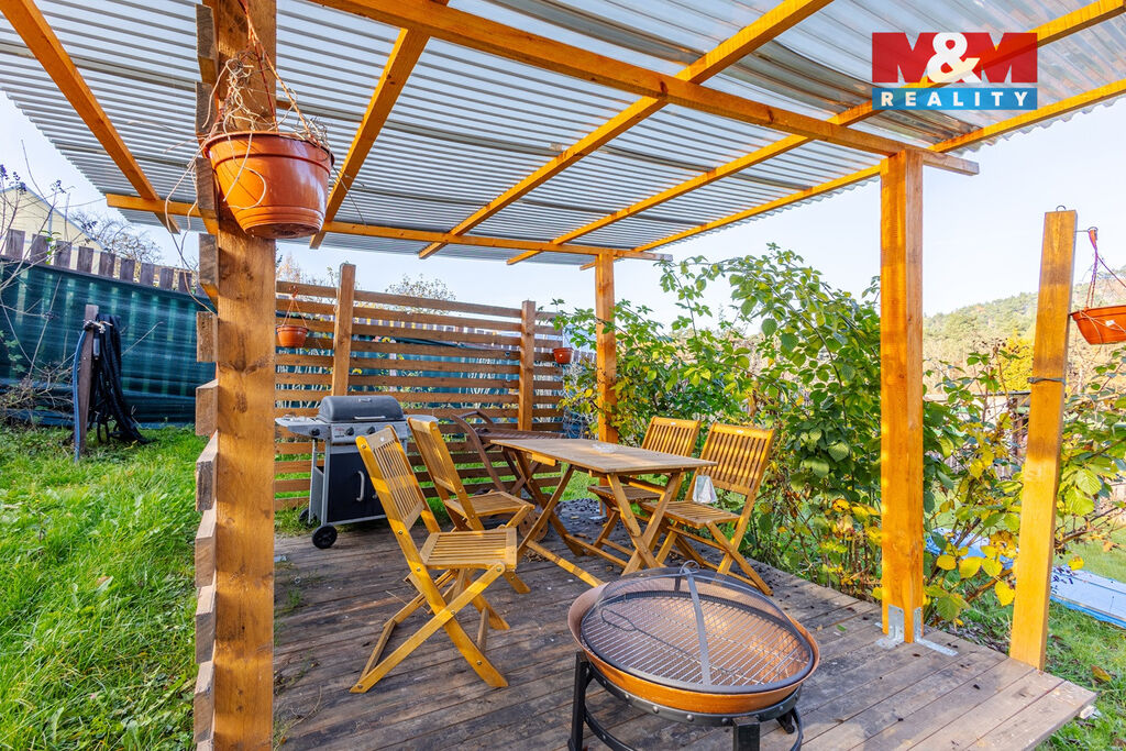 Nabízíme přenechání zahrady s chatou v osadě Máj, nacházející se v poklidné lokalitě Děčína - Letná. Na pozemku o rozloze přibližně 270 m² stojí novostavba chaty, která doslova voní novotou. Chata nabízí moderní vybavení, včetně plynového vařiče na bombu. Díky solárnímu panelu je zajištěna elektřina a voda, což přináší nezávislost a úsporu provozních nákladů. Pitná voda je přivedena přímo do chaty, zatímco užitková voda je dostupná na zahradě. K dispozici je také solární sprcha a suchý záchod. Zahrada je osázena ovocnými keři, jako jsou ostružiny a rybíz. Součástí prodeje je kompletní vybavení chaty. Na pozemku najdete i pergolu s grilem a dětské pískoviště, ideální pro rodinné chvíle.