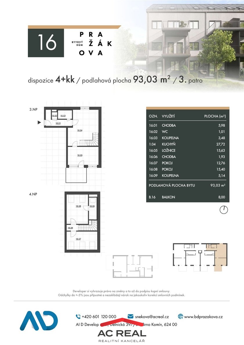 Bytový dům Pražákova je pečlivě navržen do nejmenších detailů, aby splnil vaše představy o ideálním domově. Energeticky úsporný dům se nachází v uzavřeném areálu a je vybaven pokročilými inteligentními technologiemi. K dispozici jsou parkovací i garážová stání, samostatné garáže a sklepní kóje. Velkou výhodou je blízkost univerzitního Campusu v Bohunicích, Spielberk Office Centra a výborná dostupnost na D1, D2 i do centra Brna.