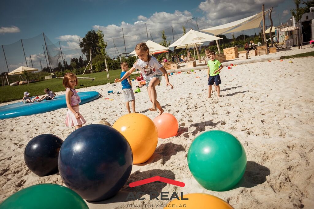 Přes vstupní chodbu se zádveřím, vhodným pro menší šatnu, a koupelnou s odděleným WC vstoupíte do velkorysého obývacího pokoje s kuchyňským koutem. V přízemí se nachází také první pokoj s přímým vstupem na terasu o velikosti 15 m² orientovanou do klidné zahrady – ideální místo pro relaxaci. Otevřené schodiště vás zavede do soukromé zóny bytu, kde najdete dvě ložnice. Větší z nich disponuje vlastní prostornou koupelnou, což splňuje všechny požadavky na moderní rodinné bydlení.