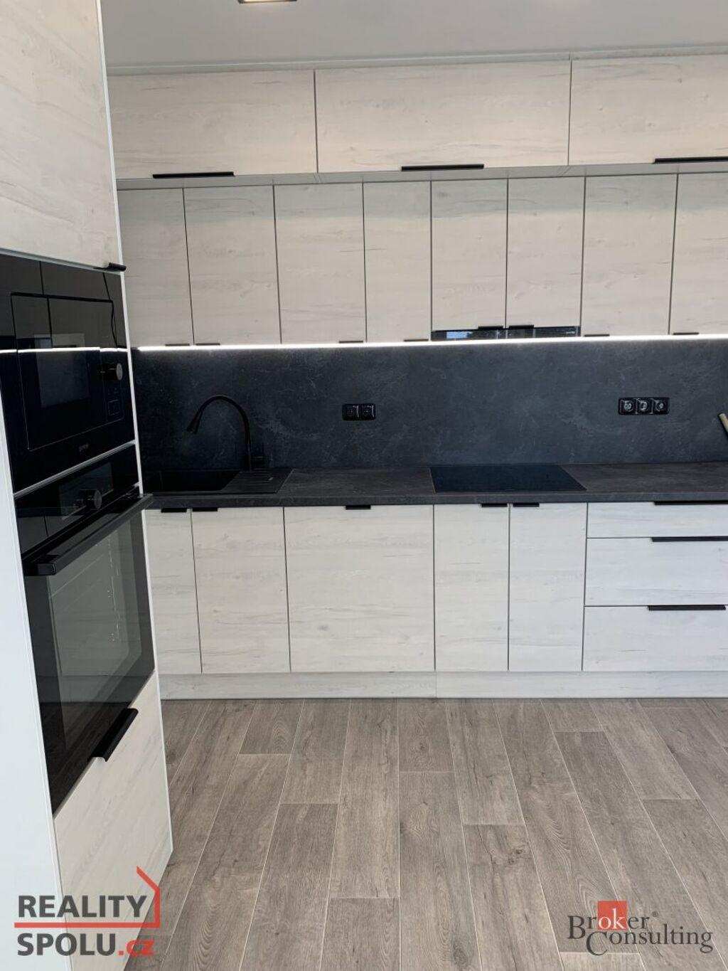 Součástí vybavení je moderní kuchyňská linka se všemi spotřebiči – indukční varná deska, elektrická trouba, myčka nádobí a mikrovlnná trouba.