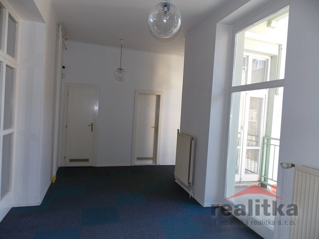 Nabízíme k pronájmu komerční prostory v 2 patře budovy na Masarykově tř. v Opavě. Jedná se o celé patro budovy sestávající ze 4 místností, kuchyňky, balkonu, chodby a WC ženy a muži. Místnosti jsou částečně vybaveny kancelářským nábytkem a podlahovými krytinami, k dispozici je kuchyňka s kuchyňskou linkou a úklidová komora. Vytápěno vlastním plynovým kotlem, samostatný elektroměr, vodoměr, plynoměr. Vhodné pro ordinace, školící prostory, kanceláře, obchodní prostory, popř. prostory pro služby (kadeřnické, nebo kosmetické studio).