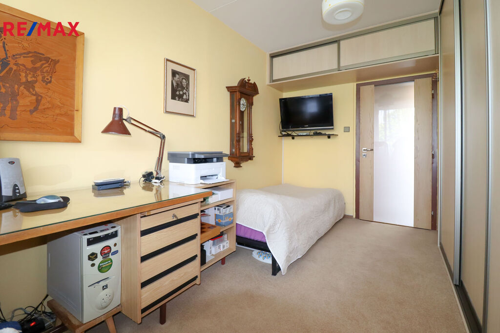 Exkluzivně vám nabízím byt 3+1 v osobním vlastnictví u metra Háje s krásným výhledem do zalesněné části sídliště. Byt je v perfektním stavu, patří k němu lodžie, je umístěn v posledním 3. patře a prošel několika rekonstrukcemi. Dům je bez výtahu a byl v roce 2015 zateplen, střecha zaizolována, v domě je samozřejmě kolárna i sušárna, na oknech z lodžie jsou bezpečnostní fólie, vstupní dveře do bytu jsou bezpečnostní od společnosti Next a byt je zabezpečen kamerou s možností sledování přes internet. V koupelně je podlahové topení s časovým programem. Většina vybavení v bytě zůstává. Kuchyň je oddělena posuvnými dveřmi a samozřejmostí je sklepní kóje umístěná v suterénu domu.