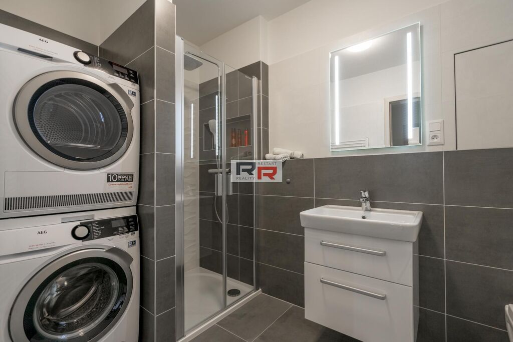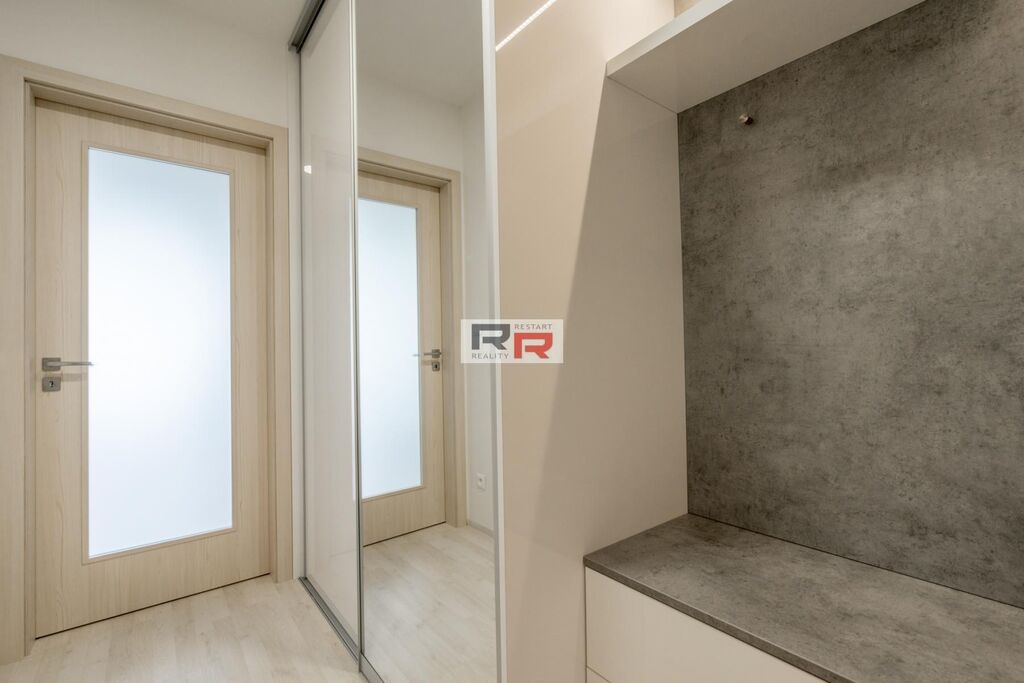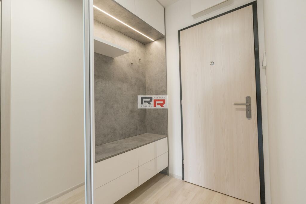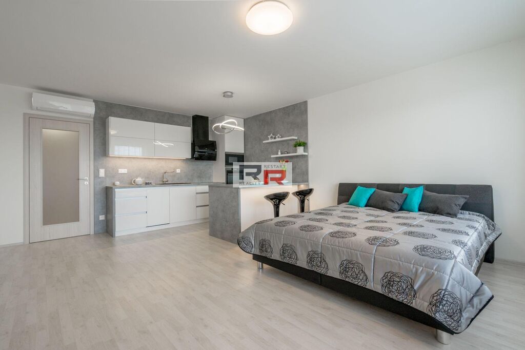 Pronájem nadstandardního bytu 1+KK o velikosti 41,2m2 s terasou o velikosti 9,01m2 v Olomouci - ul. Slavonínská. Jedná se o byt ve 4.NP cihlové novostavby, kolaudované v r.2019 s bezbariérovým přístupem. Byt se pronajímá kompletně zařízen: kuchyń. linka na míru s vestavěnými spotřebiči AEG , myčkou Bosch, lednicí, pračkou a sušičkou AEG, manželskou postelí zn. Blanař včetně roštu, matrací a peřin, obývací stěnou na míru včetně tv Samsung, vestavěnou skříní vč. botníkové stěny s LED osvětlením, barovými židlemi, pohovkou, koupelnovým nábytkem, garnýžemi vč. záclon, nádobím atd. V bytě je podlahové vytápění a dále je součástí vybavení i klimatizační jednotka. Orientace bytu je na jižní světovou stranu s výhledem na rybník Hamrys. K bytu lze pronajmout garážové stání přímo v domě za cenu 1.500,- Kč/měsíc. Po dohodě s majitelem je pak možné využít samostatný zděný sklep o velikosti 2,09m2 v suterénu domu.