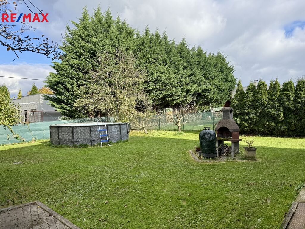 Dům rovněž disponuje prostorným sklepem o ploše 100 m², jednou garáží a třemi parkovacími místy. Na pozemku se nachází nadzemní kruhový bazén o rozměrech 12 m², který jistě oceníte v letních měsících.