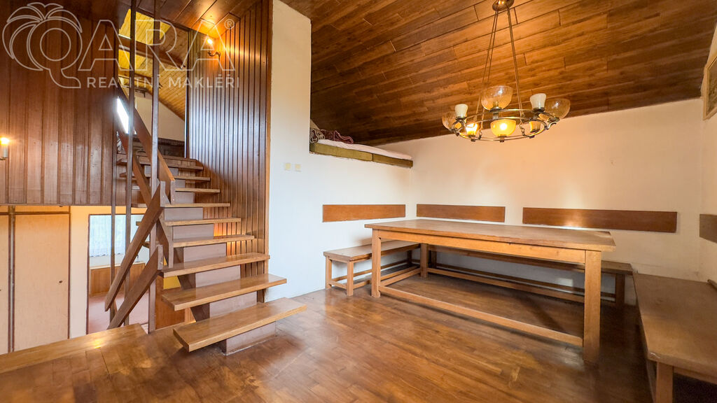Nemovitost disponuje vlastní příjezdovou cestou, garáží o ploše 50 m² a rozlehlou zahradou o výměře 1 114 m², která poskytuje naprosté soukromí a prostor pro relaxaci.