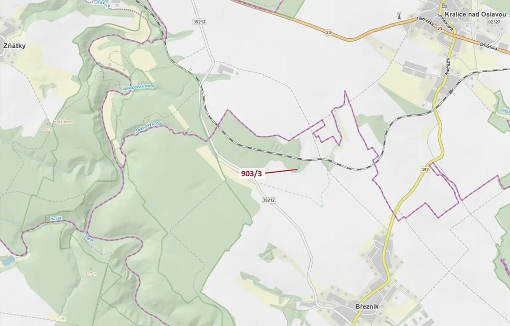 Lesní pozemek o výměře 234 m2, parcelní číslo 903/3, podíl 1/1, katastrální území Březník, obec Březník, obec s rozšířenou působností Náměšť nad Oslavou, okres Třebíč, Kraj Vysočina.