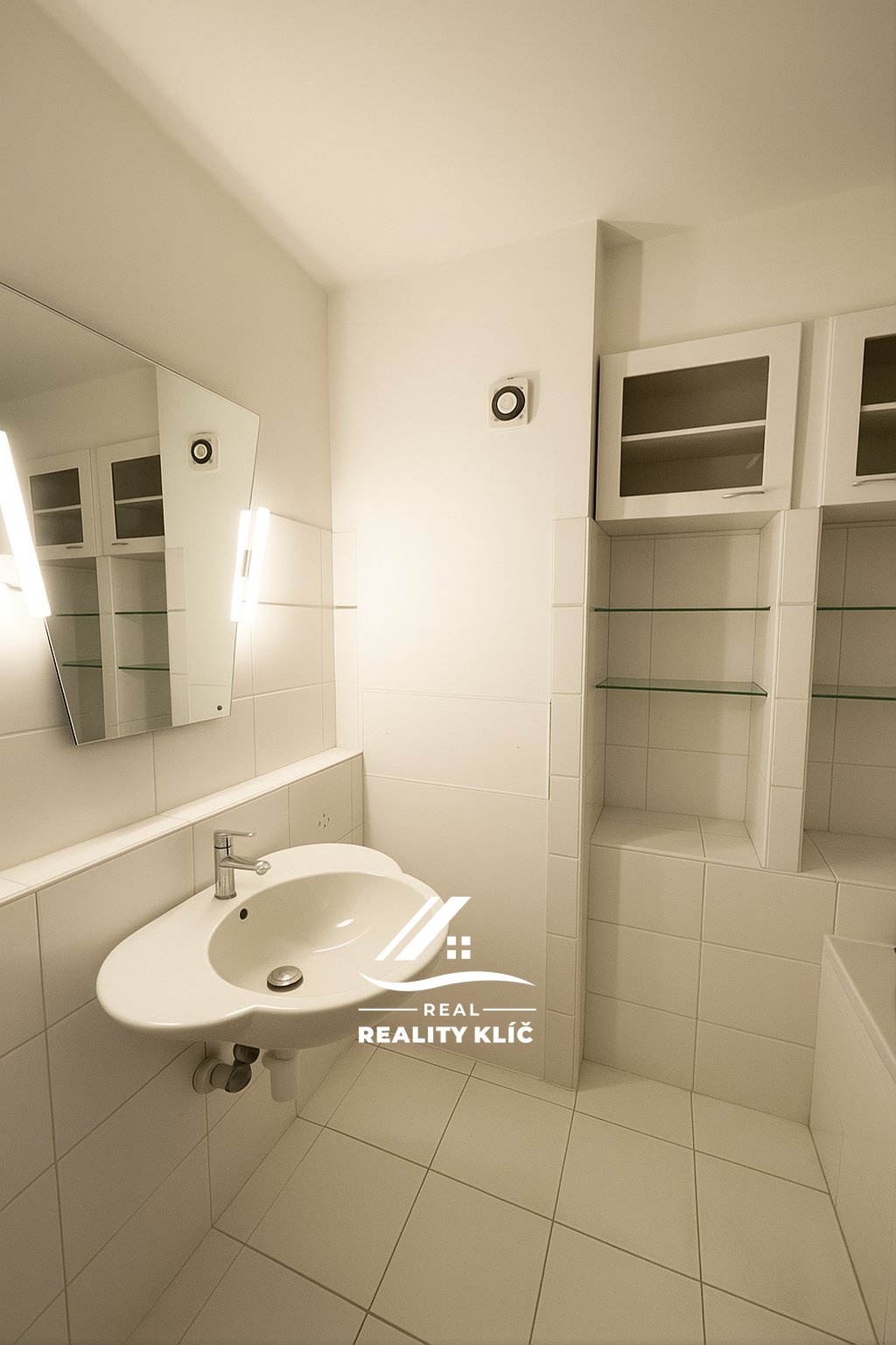 Podlahy tvoří parkety a dlažba, byt je čistý, udržovaný a připravený k okamžitému nastěhování.