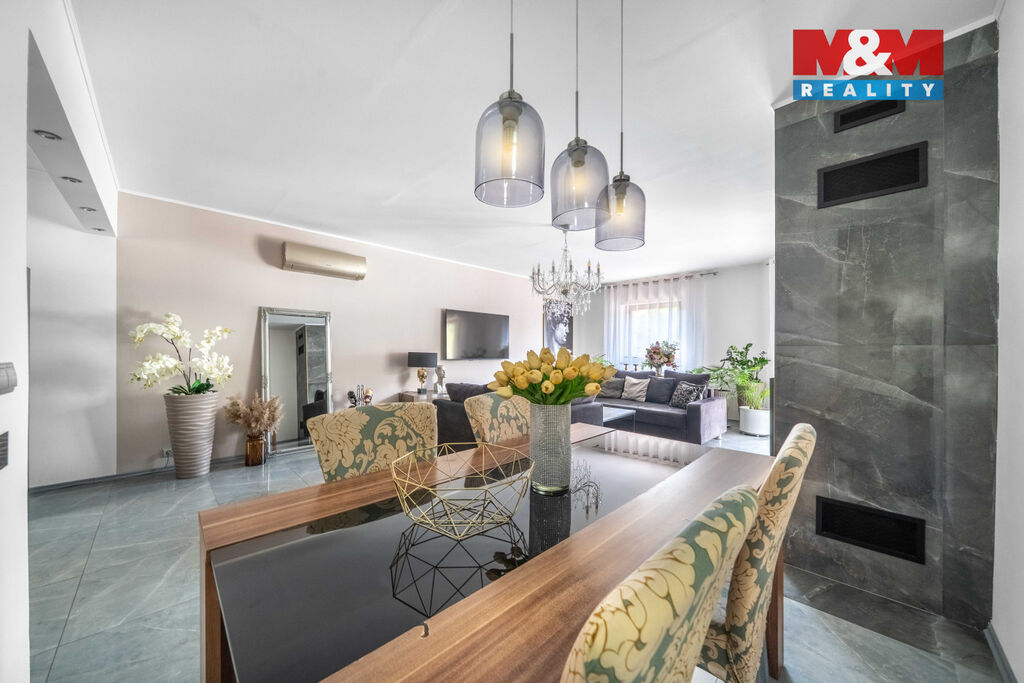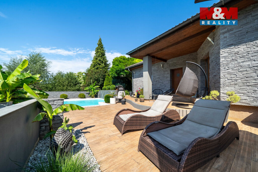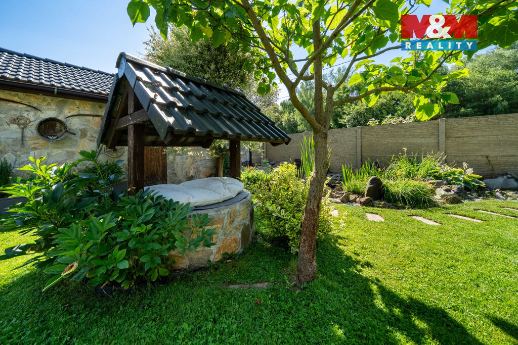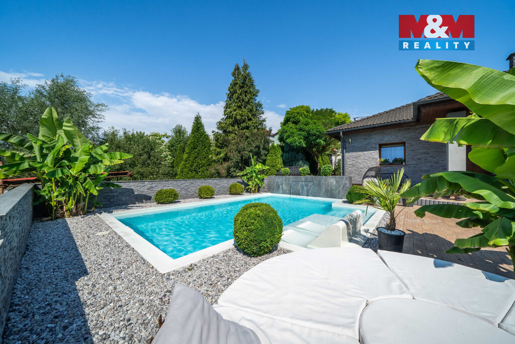 Nabízíme k prodeji výjimečný rodinný dům o dispozici 3 kk, který vyniká vysokým standardem provedení a promyšleným řešením pro komfortní bydlení. Nachází se v klidné části, kde máte absolutní klid a soukromí, zároveň však veškerou občanskou vybavenost doslova na dosah. V domě je prostorný obývací pokoj s krbem propojený s kuchyní a jídelní částí, ložnice, pokoj, velká koupelna s vanou a sprchovým koutem, samostatné WC. Přímý vstup z domu na velkou terasu nabízí krásný výhled do okrasné zahrady a okolí, je ideální pro letní posezení či rodinné grilování. Dominantou celé zahrady je nádherný bazén zapuštěný do země, který vám umožní osvěžení v horkých dnech a promění váš domov v soukromou oázu. Na pozemku o celkové výměře 722 m2 jsou 2 garáže, které nabízí dostatek úložného prostoru. Dům je napojen na veřejnou kanalizaci a zdroj vody je z vlastní studny, vytápění elektrokotlem. Přijďte se přesvědčit, že může existovat domov, který spojuje přírodu, prostor a styl.