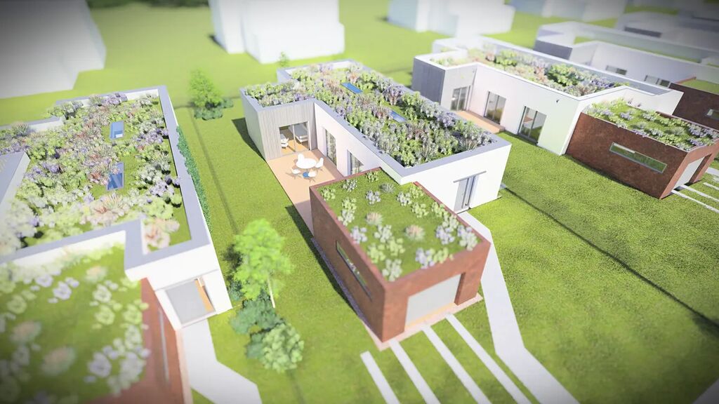 Dům je vybaven moderními technologiemi, které zajišťují nízké provozní náklady a dlouhodobý komfort: tepelné čerpadlo, podlahové vytápění, rekuperace vzduchu a zelená střecha, která podporuje příznivé klima i estetický vzhled. V ceně je navíc zahrnuta fotovoltaická elektrárna a kuchyňská linka. Orientační měsíční náklady čtyřčlenné domácnosti se pohybují okolo 5 700 Kč.