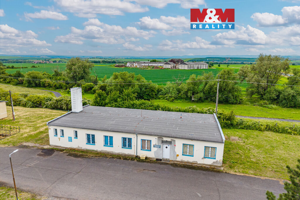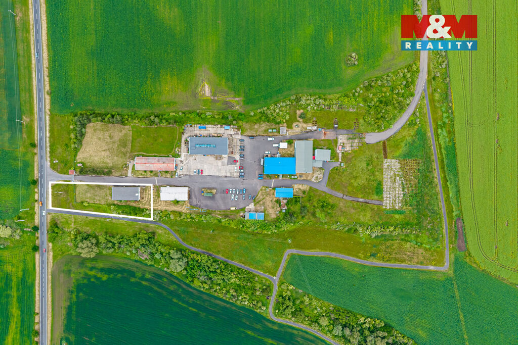 Na prodej nabízíme kancelářskou budovu s pozemkem v těsné blízkosti dálnice D7 s trasou hraniční přechod Hora Sv. Šebestiána - Praha. Objekt se nachází mezi obcemi Droužkovice a Březno u Chomutova. Nachází se v oploceném areálu. K budově náleží pozemek o rozloze 2700 m2. Budova má plochu 297 m2. Skládá se z několika kanceláří, sociálního zázemí a kuchyňky.