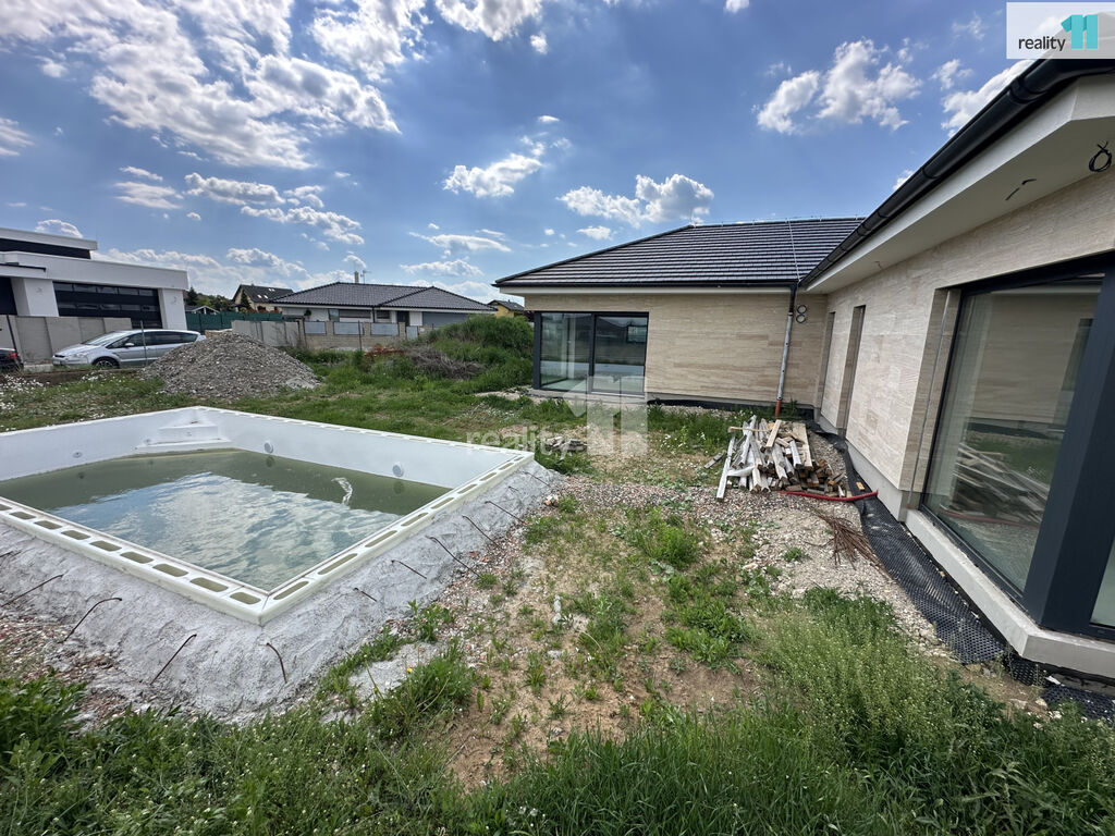 Venkovní část nabídne dokonalé zázemí pro odpočinek i zábavu: prostornou terasu se zahradou obklopenou vzrostlými stromy, luxusní pergolu s venkovní kuchyní, bioklimatickou pergolu pro optimální stínění a komfort, saunu, vířivku a vyhřívaný bazén o rozměrech 4 × 8 metrů. Součástí zahrady je také automatická závlaha a robotická sekačka, která se postará o perfektně udržovaný trávník bez vaší námahy.