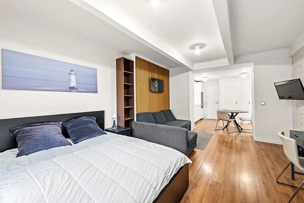 • Kuchyňský kout vybavený spotřebiči: lednice s mrazákem, trouba, mikrovlnná trouba, digestoř, myčka nádobí