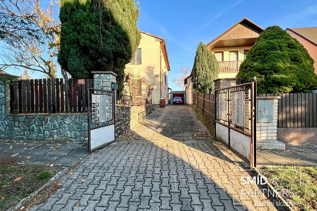 Rodinný dům s vjezdem a garáží stojí na obdélníkovém pozemku o celkové výměře 736m2 a je připojen na kanalizaci, vodovod, elektřinu i plyn.