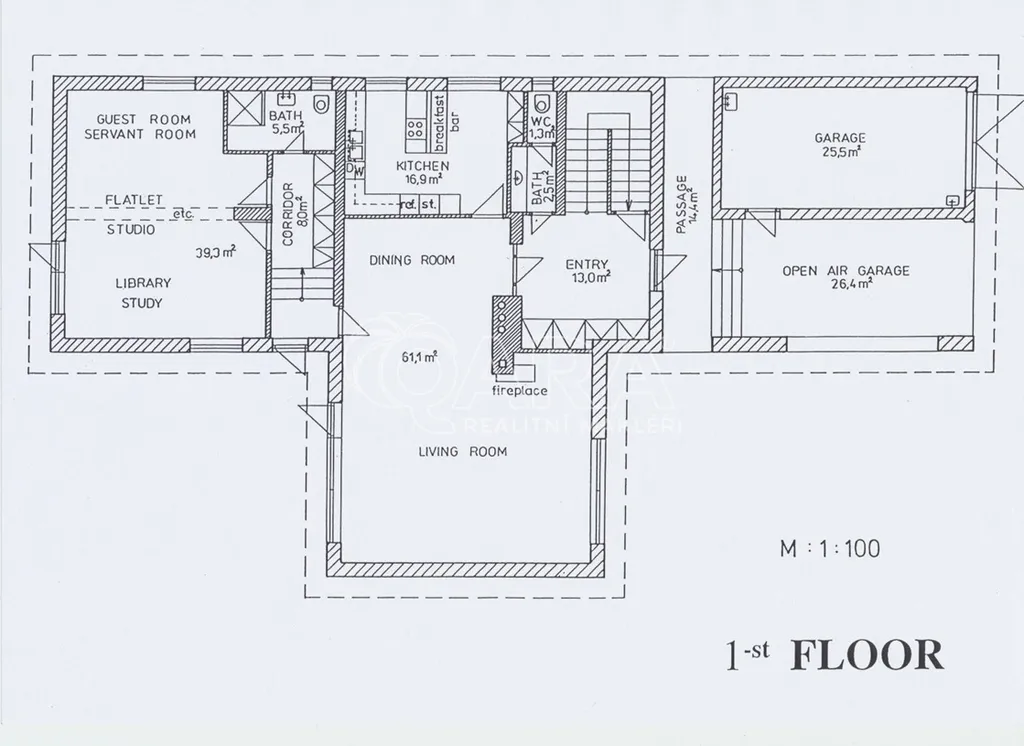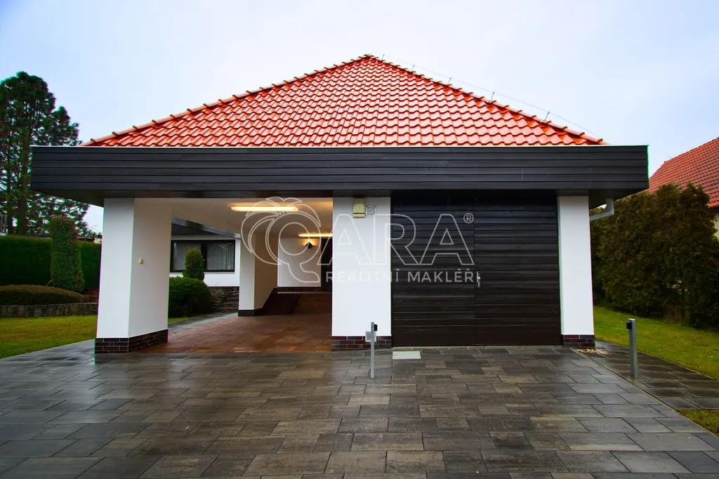 Samotný dům má zastavěnou plochu 264 m2, podlahovou plochu 417 m2, dvě garážová stání a rovinatou zahradu s velikostí 1000 m2. Vnitřní dispozice domu jsou 6+1. Největší je obývací pokoj s krbem a vysokým stropem, pro ložnice je k dispozici čtveřice koupelen, díky tomu je místo vhodné pro pohodlný život početné rodiny, kromě nájmu je nutné počítat s úhradou spotřeby energií, vody a odvozu domovního odpadu. Neváhejte se ozvat a rádi zorganizujeme prohlídku.