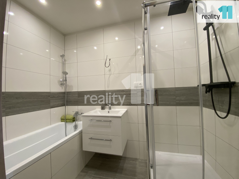 Dispozice bytu: prostorná chodba s šatnou, velká koupelna se sprchovým koutem a vanou, kuchyň s moderní kuchyňskou linkou v bílém lesku- vybavena spotřebiči (vestavěný sporák, sklokeramická deska, digestoř, myčka), obývací pokoj, ložnice s lodžií, dětský pokoj. Příjemné prostředí v bytě vytvářejí snížené stropy s bodovými světly. Po celém bytě nové kvalitní PVC ve stejném dekoru, moderní dveře.