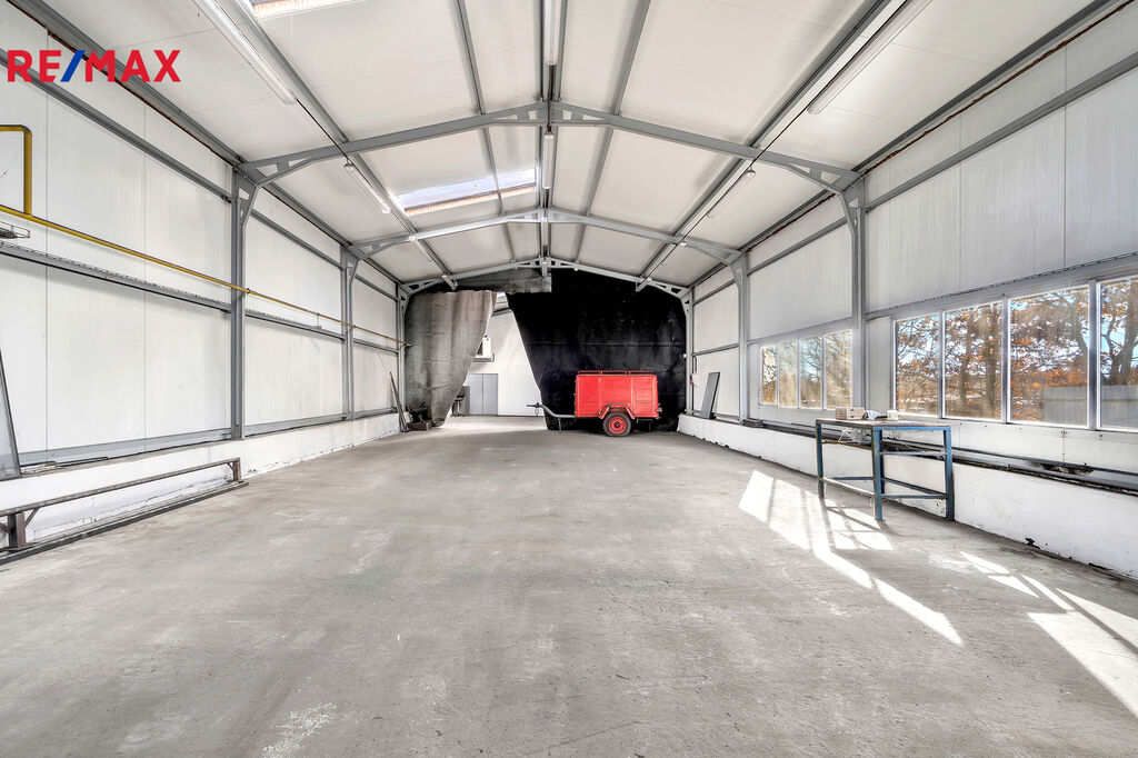 Objekt z roku 2012, sendvičové stěnové panely KINGSPAN, jednopodlažní o užitné ploše 486m2. Budova nabídne tři větší místnosti pro výrobu nebo sklady. Podlahy betonové a taktéž připravené i na manipulaci s vysokozdvižným vozíkem. Hlavní vjezdová vrata z každé místnosti 1x 2,5 a 2x 4m.