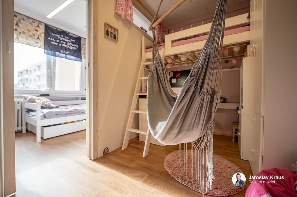 U kuchyně se také nachází samostatná pracovna, která může sloužit také jako spíž na uskladnění potravin. Dětský pokoj je rozdělen sádrokartonovou příčkou na 2 menší pokojíčky. Potenciál bytu je tedy využitý na maximum.
