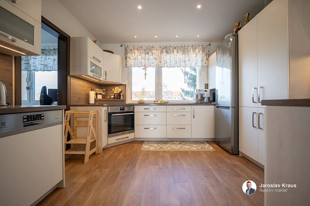 Byt o dispozici 3+kk a užitné ploše 78 m² se nachází ve 3. podlaží revitalizovaného panelového domu. V roce 2020 prošel většinovou rekonstrukcí, včetně zděného jádra a úprav interiéru, které mu dodaly svěží, útulný a funkční charakter. Je zde nová kuchyňská linka na míru s vestavěnou myčkou, troubou a indukční deskou. Součástí prodejní ceny je také vestavěná skříň na chodbě.